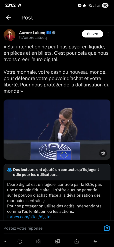 Voici ce que cette source fiable nous affirme : « Sur internet on ne peut pas payer en liquide, en pièces et en billets. C’est pour cela que nous avons créé l’euro digital. Votre monnaie, votre cash du nouveau monde, pour défendre votre pouvoir d’achat et votre liberté. Pour nous protéger de la dollarisation du monde ». Selon ce que nous avons pu apprendre de la langue de Molière au siècle dernier, on en conclut que grâce à l’euro digital qu'elle a créé, nous pourrons enfin bientôt acheter des trucs en ligne. Si ça ce n'est pas la révolution de l'année !