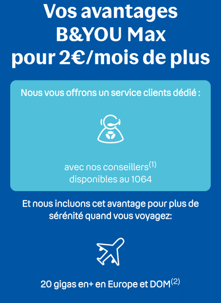 Encore un message pour vous rappeler de rester toujours très vigilant face aux pratiques des opérateurs mobiles qui sont tout sauf vos amis. Pour la énième fois depuis que nous sommes abonnés chez eux, Bouygues Télécom a une nouvelle fois tenté de nous forcer la main avec une option payante qui nous sera totalement inutile. Pour 2 Euros par mois, soit tout de même 24 Euros par an, l'opérateur nous propose : - 20 gigas en + en Europe et DOM où nous n'allons jamais - Un forfait compatible 5G alors que c'est déjà le cas ! - Un service clients dédié que nous appelons uniquement pour virer ces options imposées !