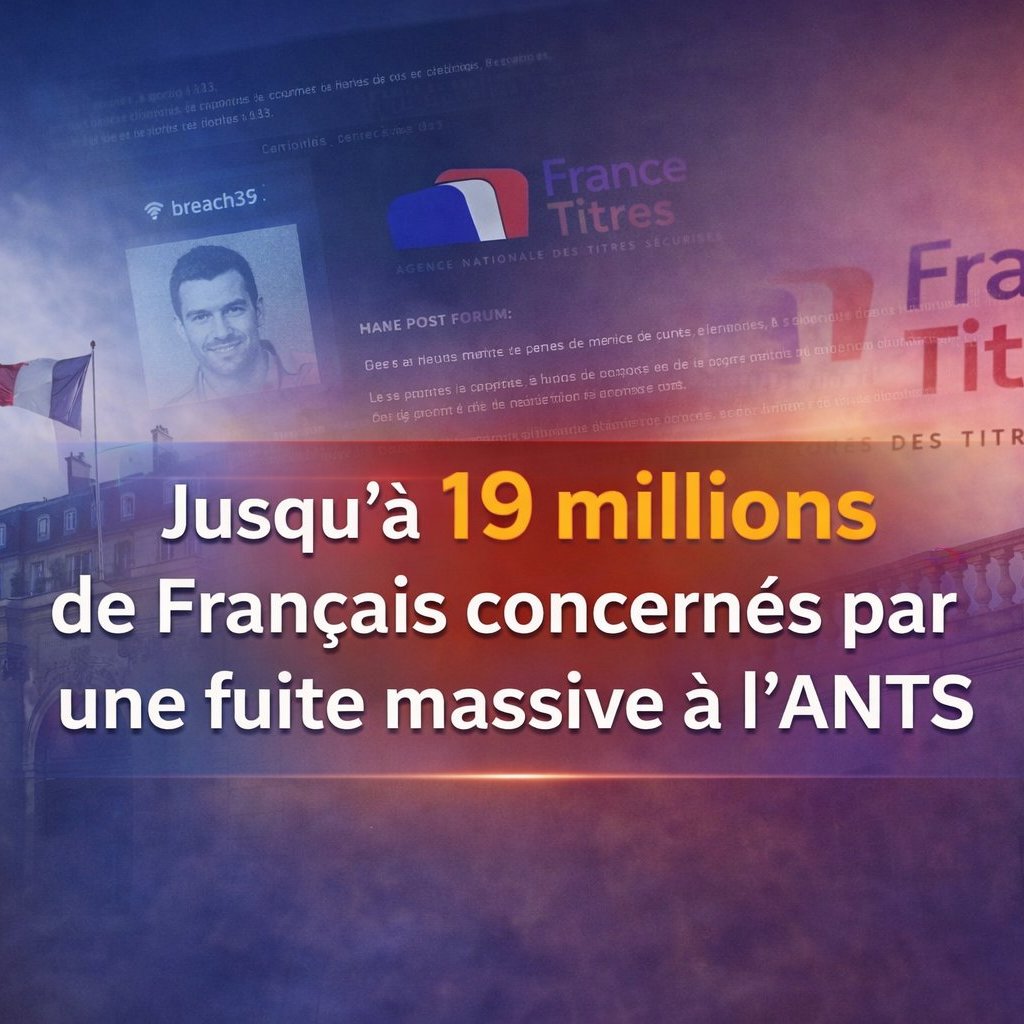 L’ANTS piraté : jusqu’à 19 millions de Français potentiellement exposés ! Il pourrait s’agir de l’une des fuites de données administratives les plus importantes en France. Une base de données massive circule actuellement sur le darknet, avec entre 18 et 19 millions d’enregistrements présentés comme issus du service officiel de l'état France Titres / ANTS.