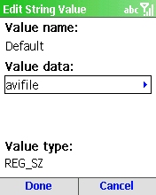 dans Value name : Default Dans value data entrez le chemin vers le player: pour moi c'est : "\IPSM\Program files\Pdvix\PocketWMP.exe" puis a la suite %1