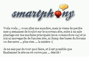 | Avant que le véritable Smartphony attendu par bon nombre d'utilisateurs de Smartphones, rouvre ses portes, n'hésitez pas à découvrir une dernière fois la petite page hommage de Smartphony France.